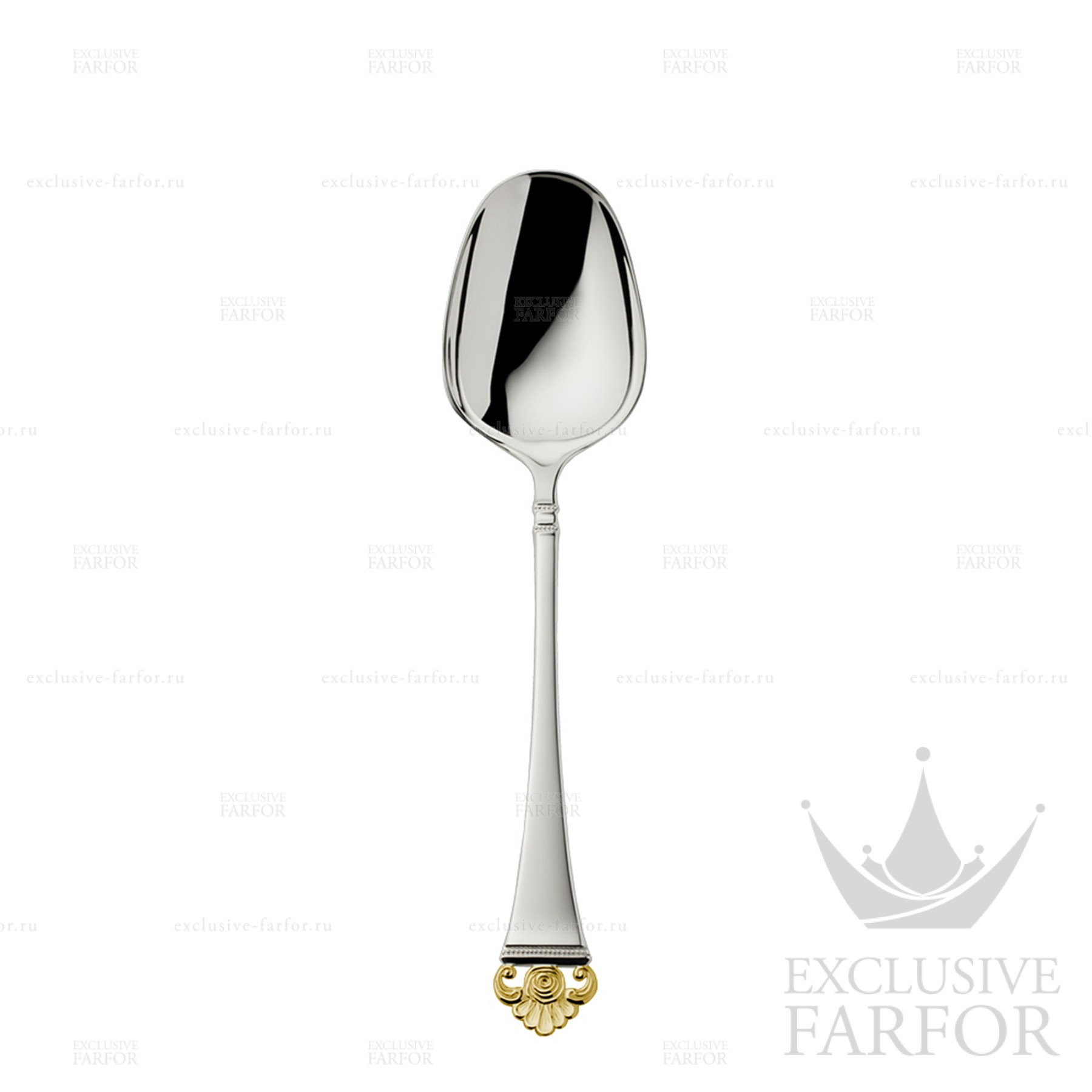 Артикул rb-03833039 Страна производителя Германия Брэнд Robbe & Berking Форм/Декор Rosenmuster "Серебро + узорная позолота" Материал Серебро, Золото Размер/Обьём 22,7см Вес Серебра Не применимо - Отзывы