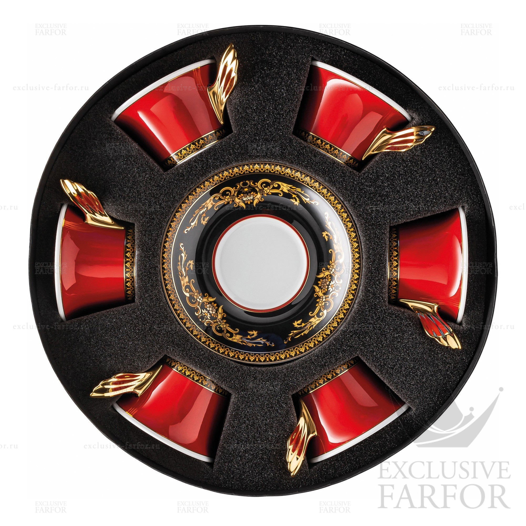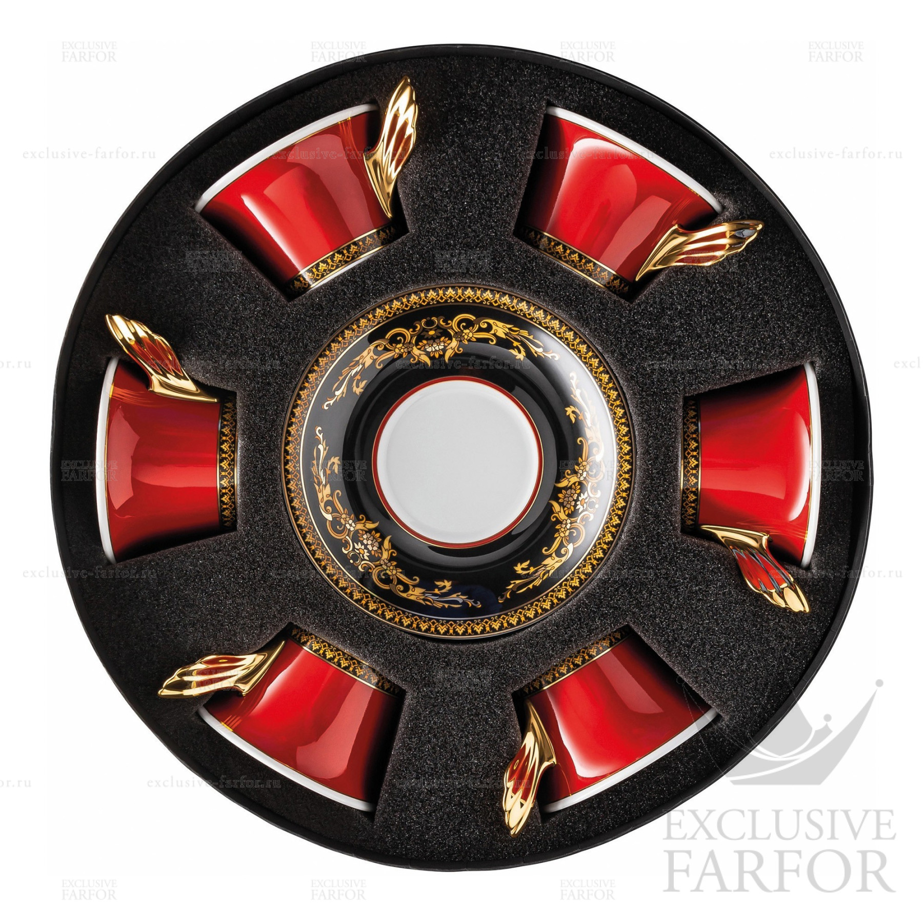 Фарфор Rosenthal Versace Gianni Versace вместе с образом Икара отображает неподражаемый, богатый, яркий мир Versace. Центральный бликфанг этой посуды - пышная, золотистая голова Медузы, бесспорный символ Versace. Она обрамлена экспрессивный орнаментом в стиле барокко. Цвета действительно аристократичны: светящийся красный, благородный золотой и черный. - Дополнительная информация