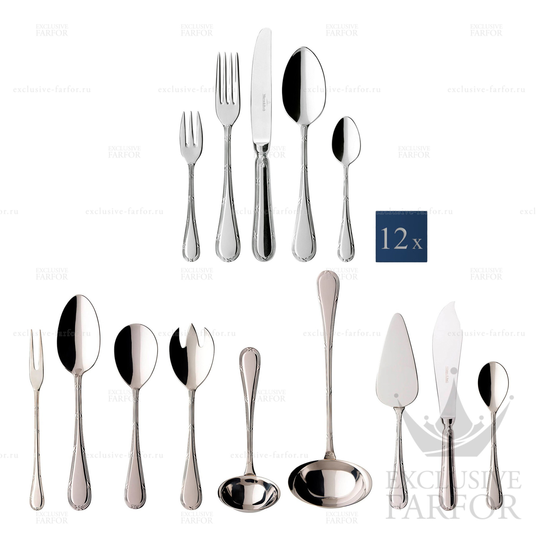 Артикул vb-1262439072 Страна производителя Германия Брэнд VB Форм/Декор Kreuzband Septfontaines "Сталь" Материал Сталь Размер/Обьём 70 предметов Вес Серебра Не применимо - Отзывы