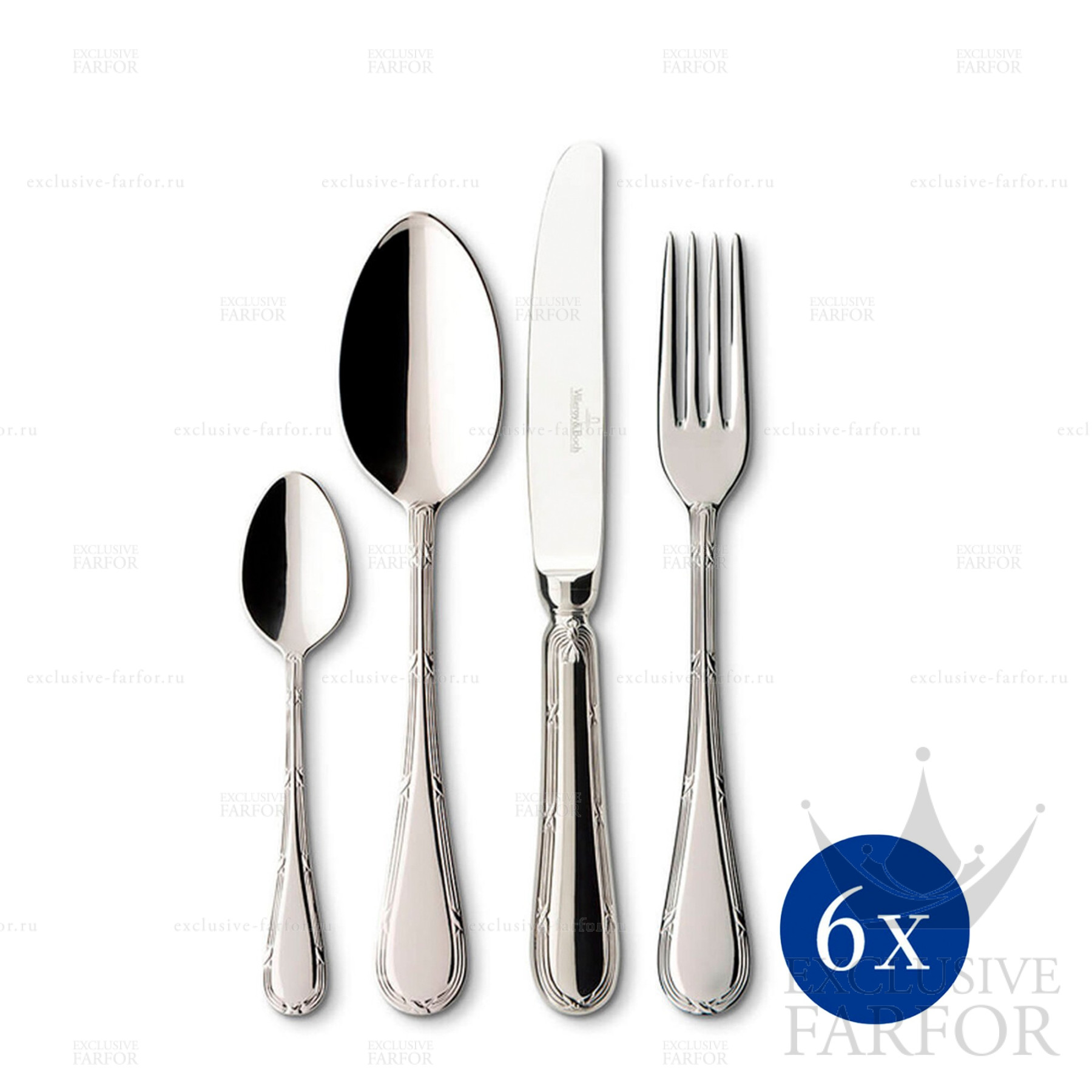 Артикул vb-1259229030 Страна производителя Германия Брэнд VB Форм/Декор Kreuzband Septfontaines "Посеребрение" Материал Посеребрение, Сталь Размер/Обьём 24 предмета Вес Серебра Не применимо - Отзывы